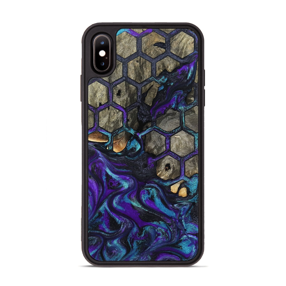 Ieshia has beautiful Buckeye wood with dark and light tones. Intertwined with vibrant swirls of purple and blue, it features a hexagonal pattern that adds depth and interest.