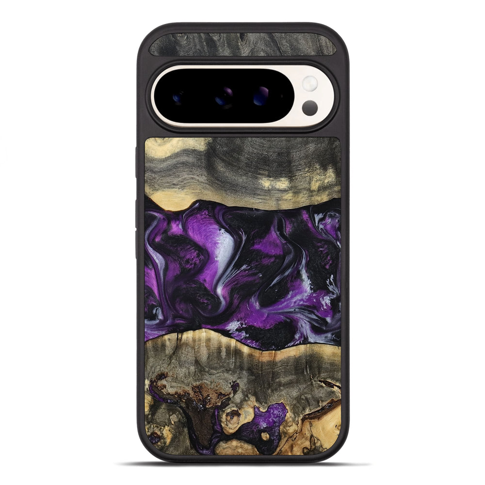 Mariah has a beautiful mix of deep purple swirls and soft natural wood tones. The pattern flows smoothly between dark and light areas, creating a striking visual contrast.
