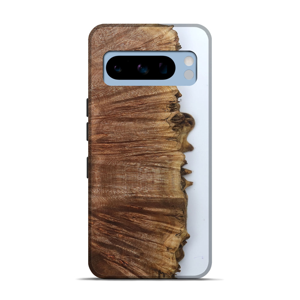 Our Live Edge cases are made from an amazing combination of stabilized wood burl and colored resin. Our stabilization process hardens the wood to protect against cracks and breaks. We do every step of the process at our shop in Northern Indiana. Perfectly fits the Pixel 8 Pro.