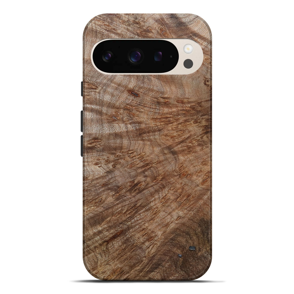 Our Live Edge cases are made from an amazing combination of stabilized wood burl and colored resin. Our stabilization process hardens the wood to protect against cracks and breaks. We do every step of the process at our shop in Northern Indiana. Perfectly fits the Pixel 9 Pro XL.