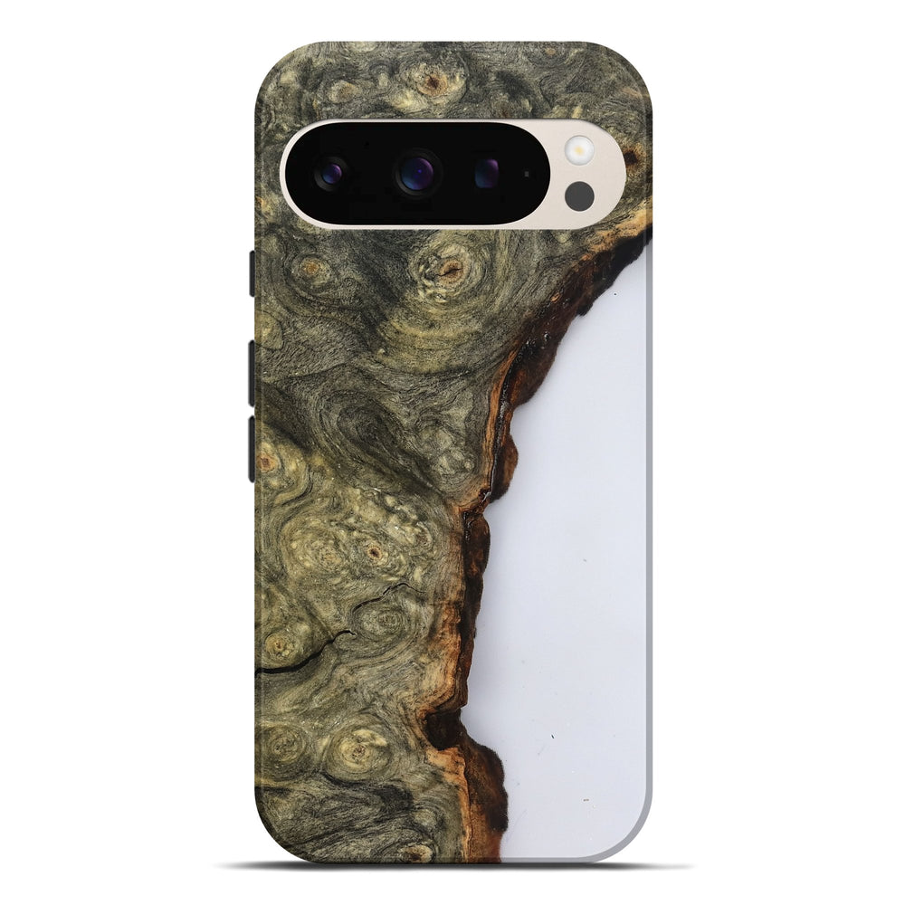 Our Live Edge cases are made from an amazing combination of stabilized wood burl and colored resin. Our stabilization process hardens the wood to protect against cracks and breaks. We do every step of the process at our shop in Northern Indiana. Perfectly fits the Pixel 9 Pro XL.