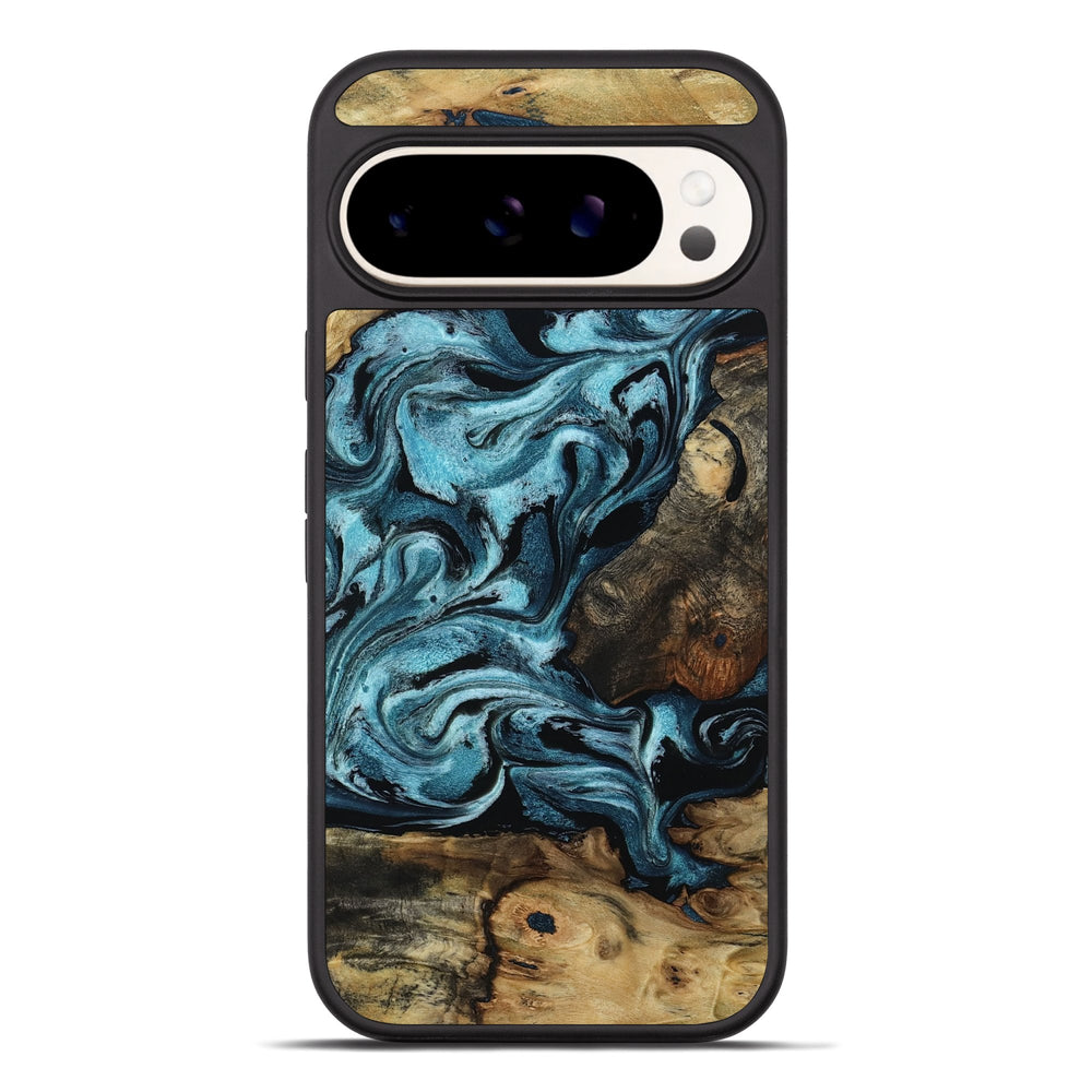 Cade has smooth, swirling patterns in shades of blue against a warm, golden backdrop. The contrasting colors create a calming and natural look, highlighting the beauty of the wood.