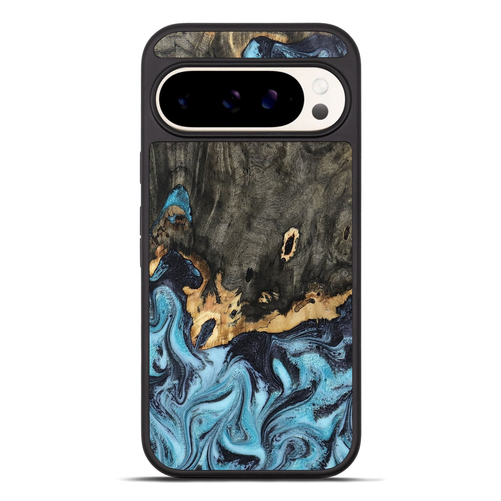 Sydni has warm brown tones blended with striking blue and black swirls. The smooth, wave-like patterns create a unique and inviting texture.