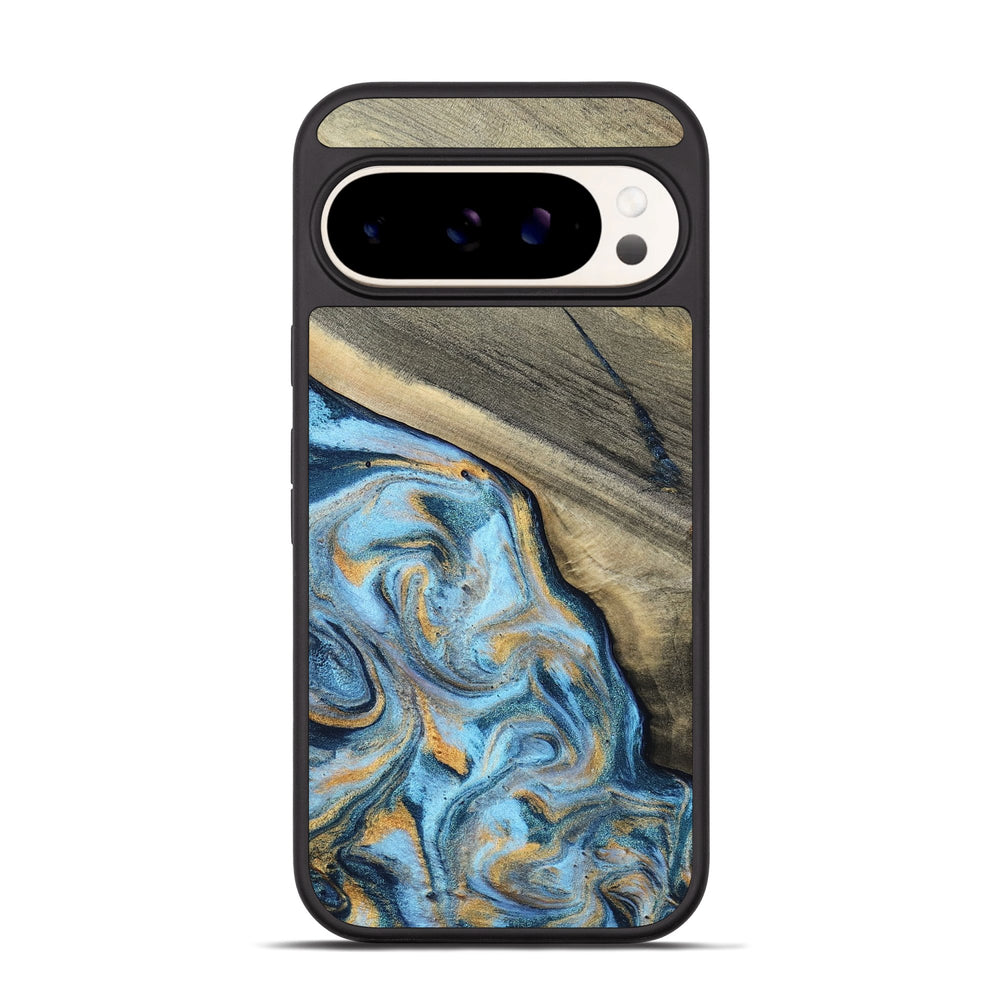 Leia has smooth, swirling patterns in blue and gold that flow beautifully across its surface. The warm tones of the Buckeye wood create a lovely contrast, making it a striking piece.